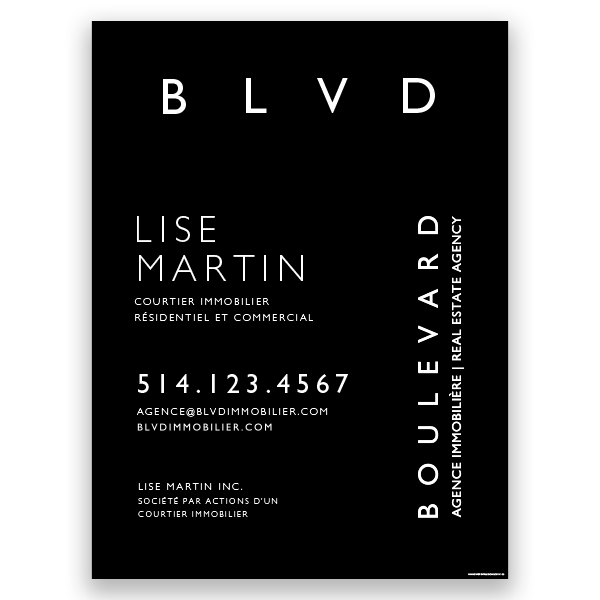 Official Boulevard Immobilier sign. Printed on high grade 4MM coroplast. For posts, Size 23.5 X 31.5 without photo.