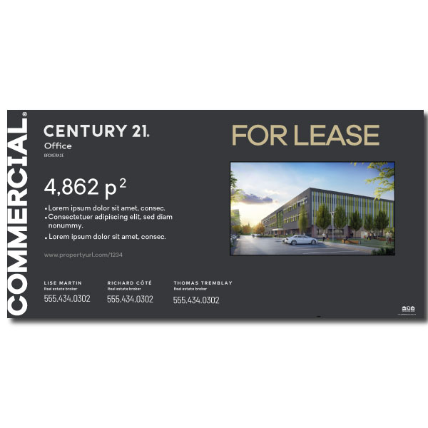 Official Century 21 commercial sign. Printed on high grade 6MM coroplast. Size 95.5 X 47.5 without photo.
