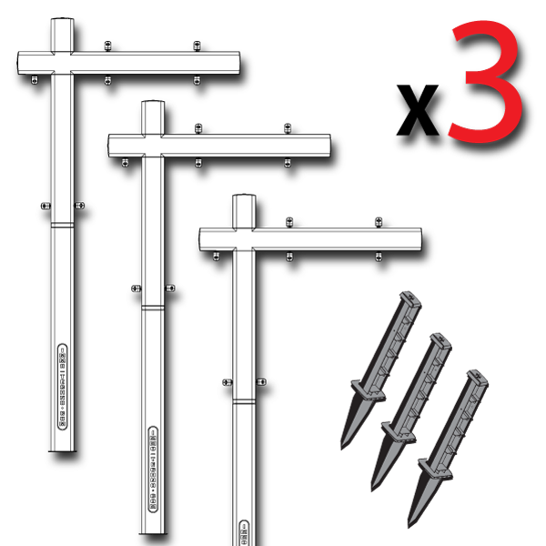 This special edition post with two extra clips allows you to affix two signs and a topper ! Made of white plastic, (no paint, no rust), light but sturdy. Higher than competitors at 70'' for good visibility. Comes apart for easy transportation in small car. Main sign 24''X32'' side panel sign 12''X32''. Comes with nylon anchor.