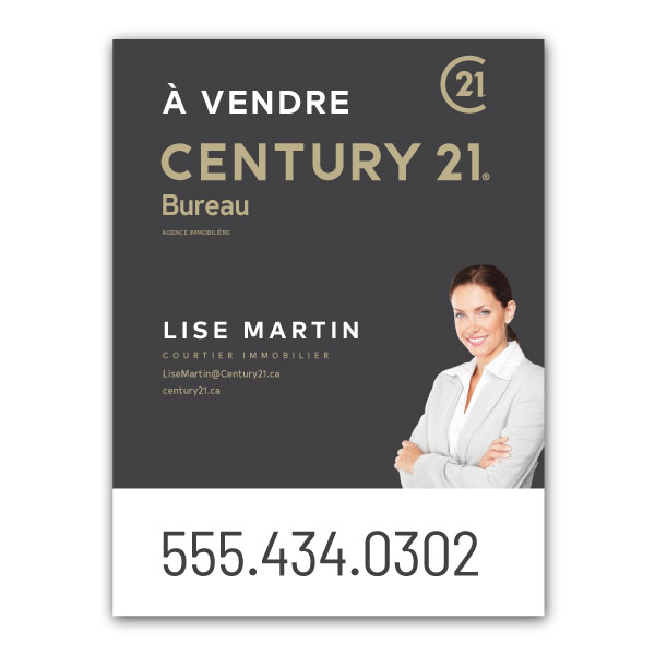 Official Century 21 sign. Printed on high grade 4MM coroplast. For posts, Size 23.5 X 31.5 with broker's picture.