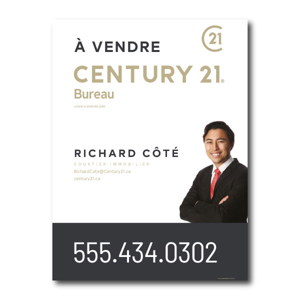 Official Century 21 sign. Printed on high grade 4MM coroplast. For posts, Size 23.5 X 31.5 with broker's picture.