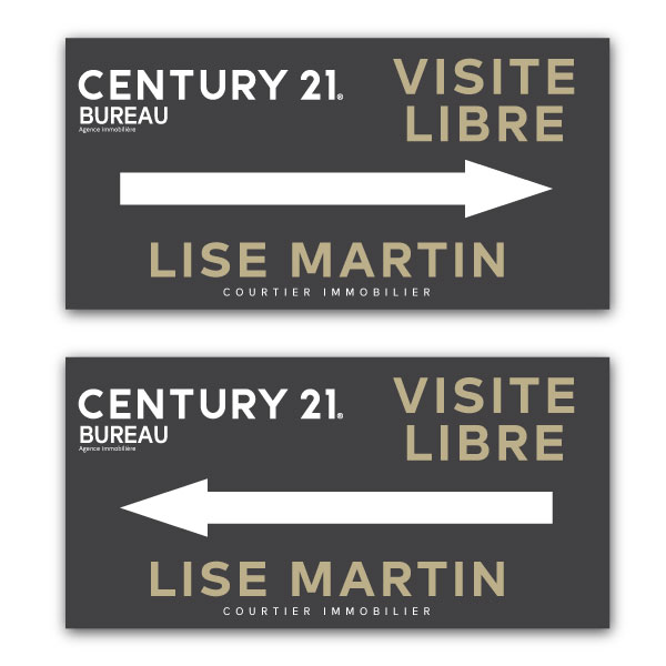 Official Century 21 arrow. Printed on high grade 4MM coroplast. For posts, Size 23.5 X 11.5 without photo.