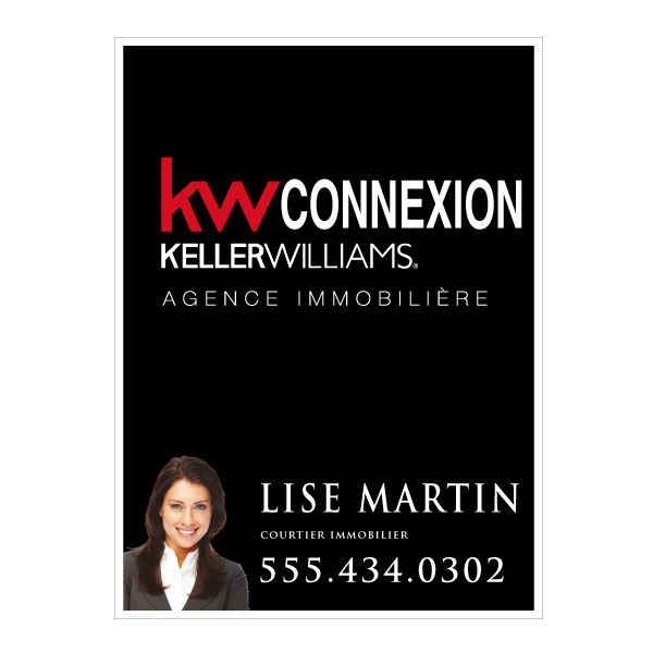 Official Keller Wiliams sign. Printed on high grade 4MM coroplast. For posts, Size 31.5 X 23.5 with broker's picture.