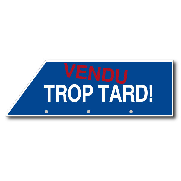 Official L'expert Immobilier topper. Printed two sided on high grade 6MM coroplast. Size 23.5 X 7.5 without photo.