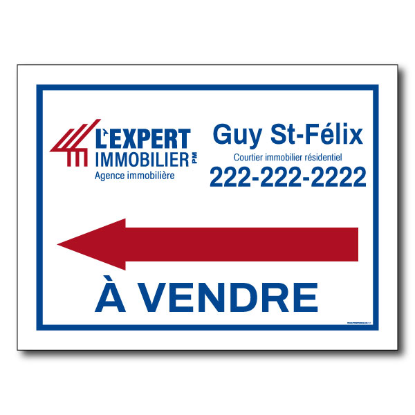 Official L'expert Immobilier sign. Printed on high grade 4MM coroplast. For A-frames, Size 24 X 18 without photo.