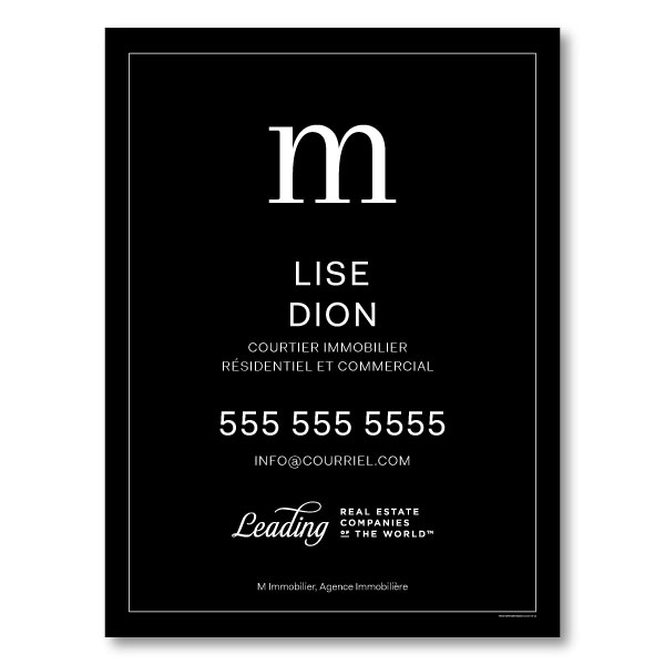 Official M Immobilier sign. Printed on high grade 4MM coroplast. For arm posts, Size 31.5 X 23.5 without photo.