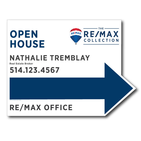 Official RE/MAX arrow. Printed on high grade 4MM coroplast. For posts, Size 23.5 X 17.5 without photo.