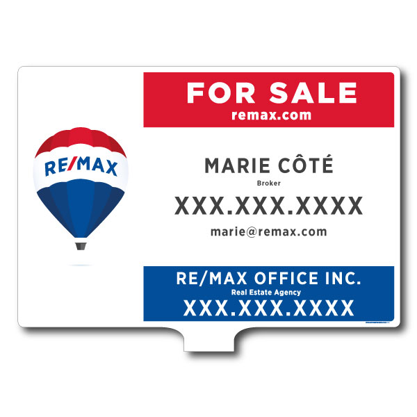 Official RE/MAX sign. Printed on high grade 4MM coroplast. For posts, Size 31.5 X 23.5 without photo.