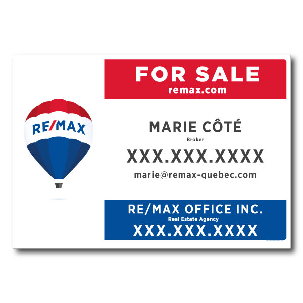 Official RE/MAX sign. Printed on high grade 4MM coroplast. For balcony, Size 32 X 22 without photo.
