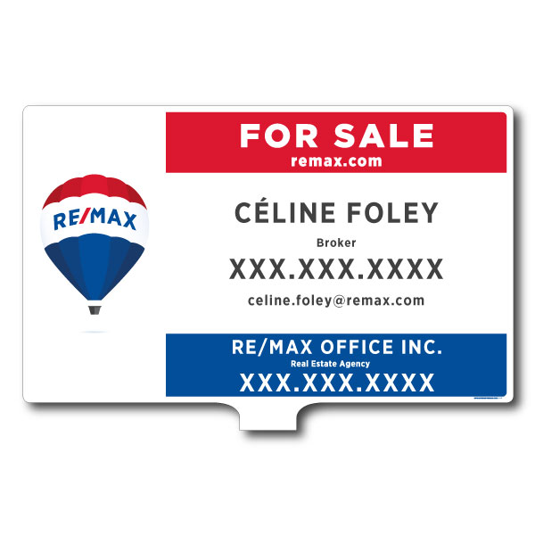 Official RE/MAX sign. Printed on high grade 4MM coroplast. For posts, Size 35.5 X 23.5 without photo.