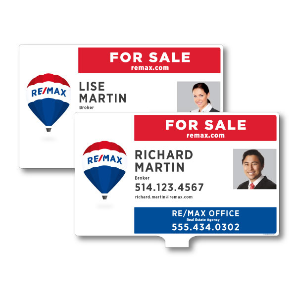 Official RE/MAX sign. Printed on high grade 4MM coroplast. For posts, Size 35.5 X 23.5 with broker's picture.