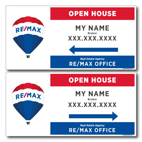 Official RE/MAX arrow. Printed on high grade 4MM coroplast. For posts, Size 23.5 X 11.5 without photo.
