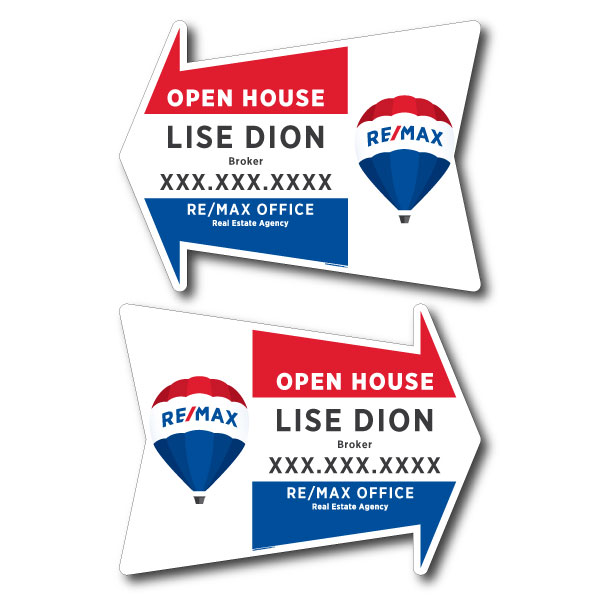 Official RE/MAX arrow. Printed on high grade 4MM coroplast. For posts, Size 23.5 X 17.5 without photo.