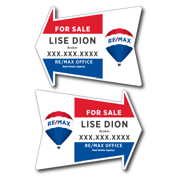 Official RE/MAX arrow. Printed on high grade 4MM coroplast. For posts, Size 23.5 X 17.5 without photo.