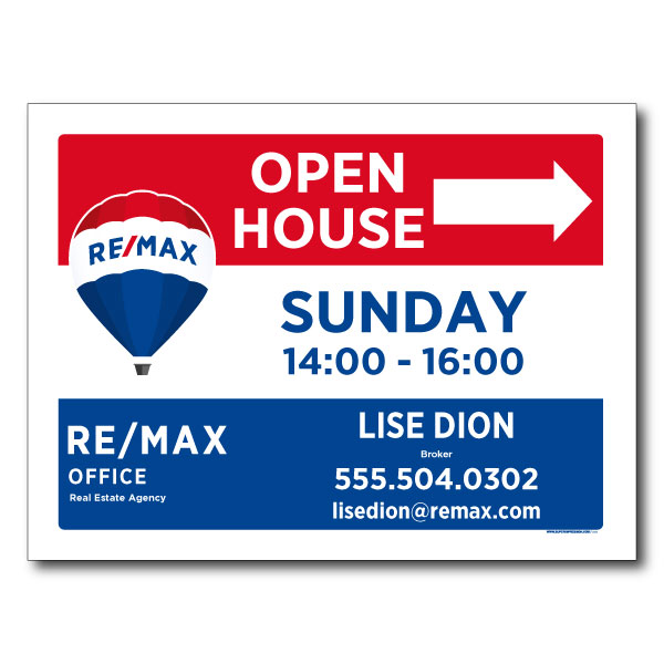 Official RE/MAX sign. Printed on high grade 4MM coroplast. For A-frames, Size 24 X 18 without photo.