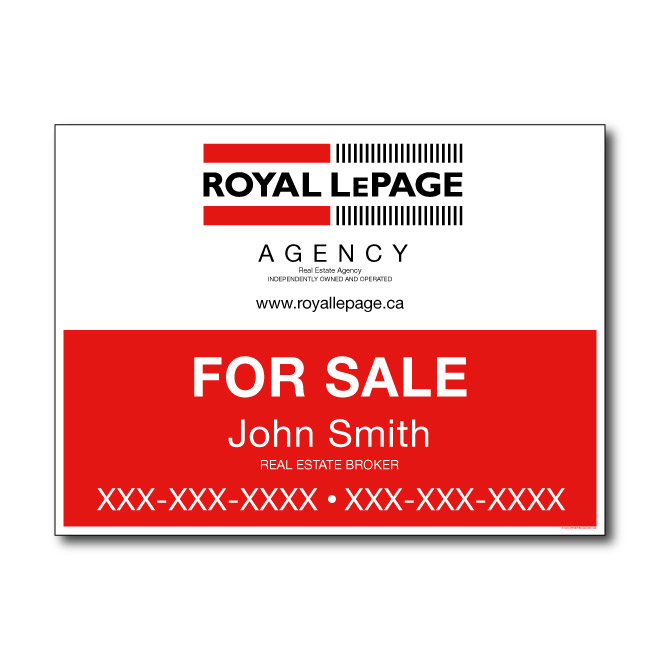 Official Royal Lepage sign. Printed on high grade 4MM coroplast. For posts, Size 31.5 X 23.5 without photo.