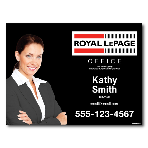 Official Royal Lepage sign. Printed on high grade 4MM coroplast. For posts, Size 31.5 X 23.5 with broker's picture.