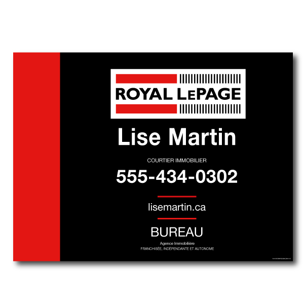 Official Royal Lepage sign. Printed on high grade 4MM coroplast. For posts, Size 31.5 X 23.5 without photo.