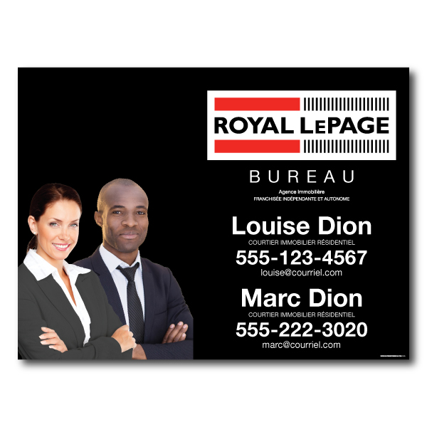 Official Royal Lepage sign. Printed on high grade 4MM coroplast. For posts, Size 31.5 X 23.5 with broker's picture.