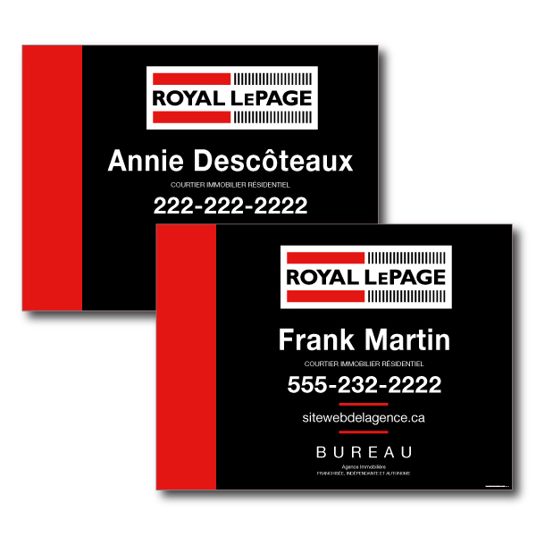 Official Royal Lepage sign. Printed on high grade 4MM coroplast. For posts, Size 31.5 X 23.5 without photo.