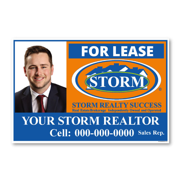 Official Storm Realty sign. Printed on high grade 4MM coroplast. For posts, Size 35.5 X 23.5 with broker's picture.