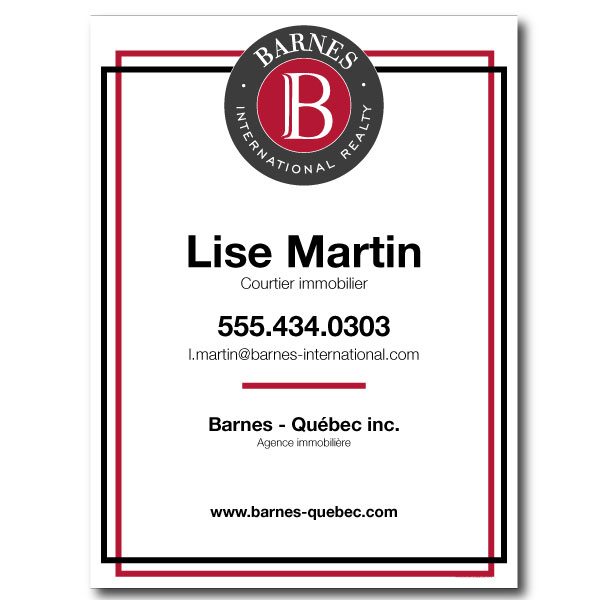 Pancarte officielle de Barnes. Imprimée sur un PVC de haut grade 6MM. Pour balcons, format 23.5 X 31.5 sans photo. Avec 4 oiellets aux coins