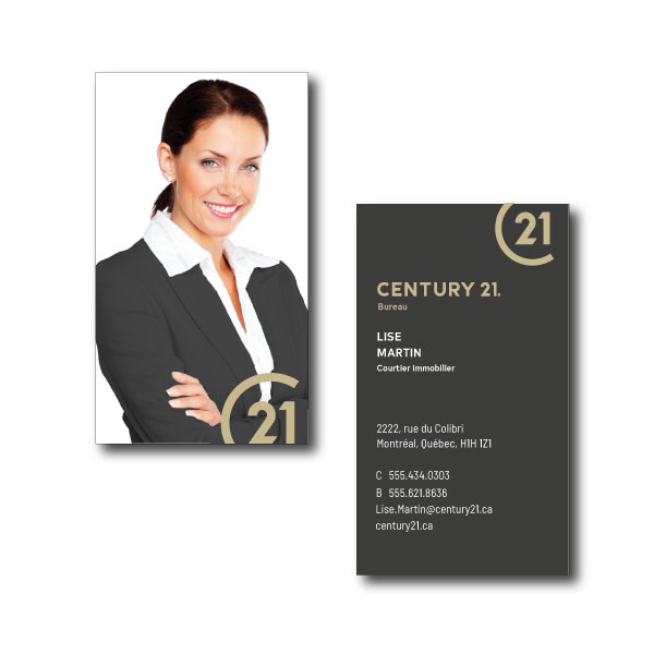 Cartes d'affaires de Century 21. Imprimées sur un carton 16pts laminé mat deux cotés. format 3.5 X 2