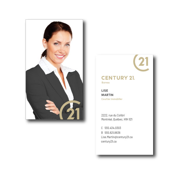 Cartes d'affaires de Century 21. Imprimées sur un carton 16pts laminé mat deux cotés. format 3.5 X 2