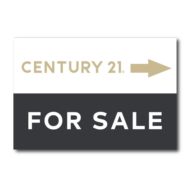 Pancarte officielle de Century 21. Imprimée sur un coroplast de haut grade 4MM. Pour chevalets, format 32 X 22 sans photo.