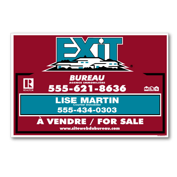 Pancarte officielle de Exit. Imprimée sur un coroplast de haut grade 4MM. Pour poteaux, format 35.5 X 23.5 sans photo.