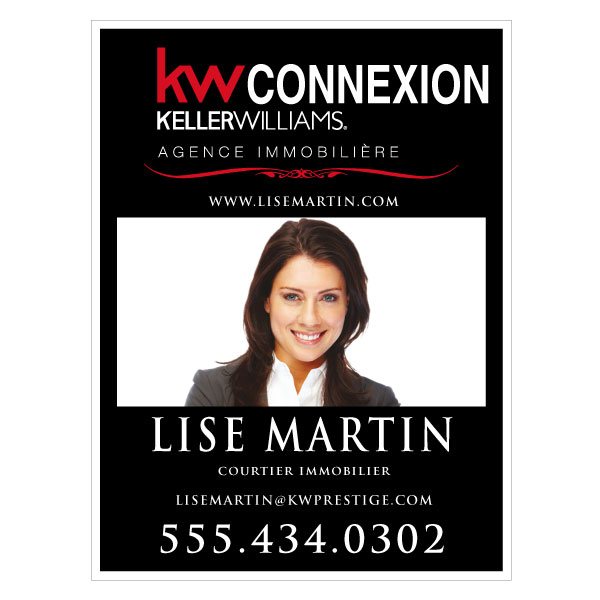 Pancarte officielle de Keller Wiliams. Imprimée sur un coroplast de haut grade 4MM. Pour poteaux, format 31.5 X 23.5 sans photo.