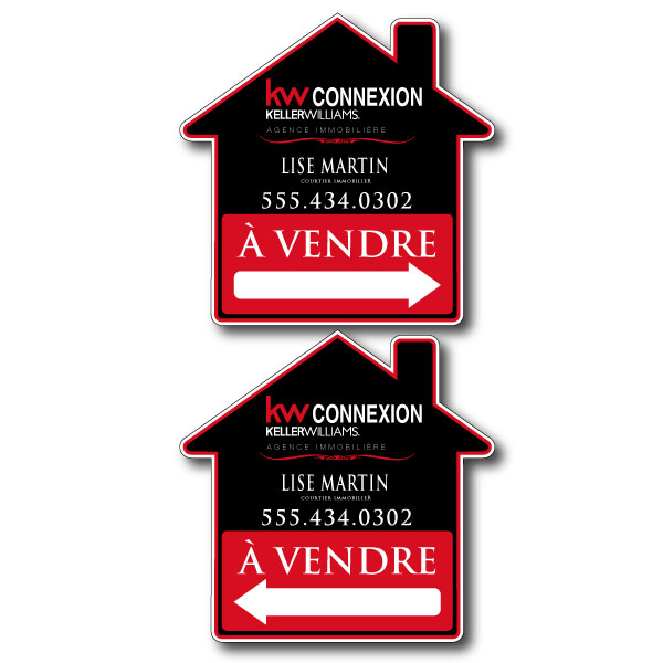 Directionnelle officielle de Keller Wiliams. Imprimée sur un coroplast de haut grade 4MM. Pour poteaux, format 23.5 X 23.5 sans photo.