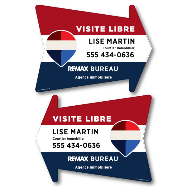 Directionnelle officielle de RE/MAX. Imprimée sur un coroplast de haut grade 4MM. Pour poteaux, format 23.5 X 17.5 sans photo.