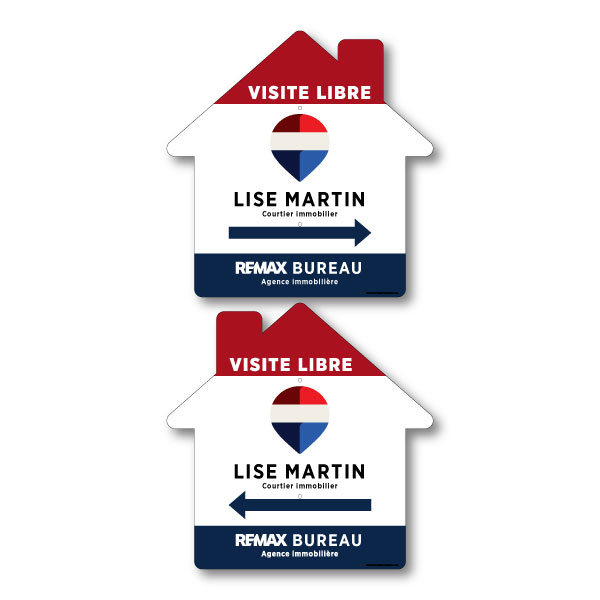 Directionnelle officielle de RE/MAX. Imprimée sur un coroplast de haut grade 4MM. Pour poteaux, format 23.5 X 23.5 sans photo.