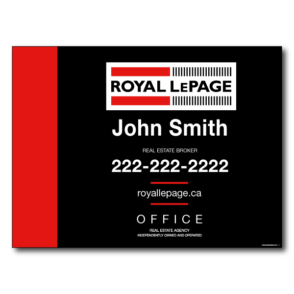 Pancarte officielle de Royal Lepage. Imprimée sur un coroplast de haut grade 4MM. Pour balcons, format 31.5 X 23.5 sans photo. Avec 4 oiellets.