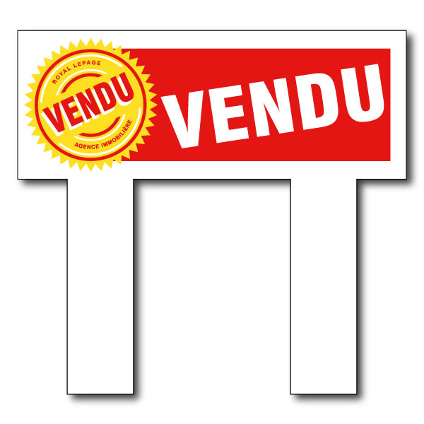 Ajout officiel de Royal Lepage. Imprimé recto-verso sur un coroplast de haut grade 6MM. format 23.5 X 9 sans photo.