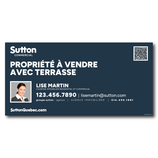 Pancarte commerciale officielle de Sutton. Imprimée sur un coroplast de haut grade 6MM. format 47.5 X 23.5 avec la photo du courtier.