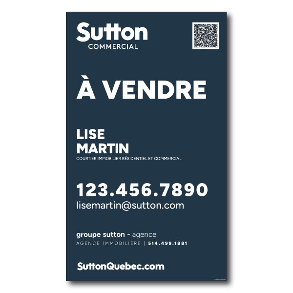 Pancarte commerciale officielle de Sutton. Imprimée sur un coroplast de haut grade 6MM. format 35.5 X 59.5 sans photo.