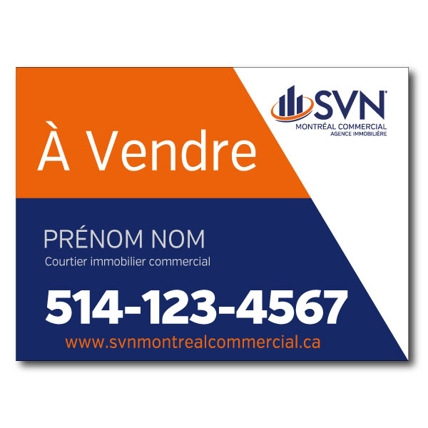 Pancarte commerciale officielle de SVN Montreal. Imprimée sur un coroplast de haut grade 6MM. format 47.5 X 35.5 sans photo.