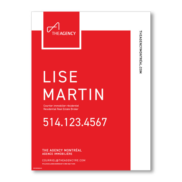 Pancarte officielle de The Agency. Imprimée sur un coroplast de haut grade 4MM. Pour poteaux, format 23.5 X 31.5 sans photo.