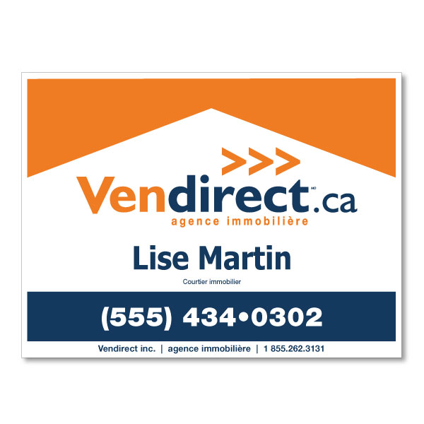 Pancarte officielle de Vendirect. Imprimée sur un coroplast de haut grade 4MM. Pour poteaux, format 31.5 X 23.5 sans photo.