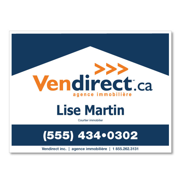 Pancarte officielle de Vendirect. Imprimée sur un coroplast de haut grade 4MM. Pour poteaux, format 31.5 X 23.5 sans photo.