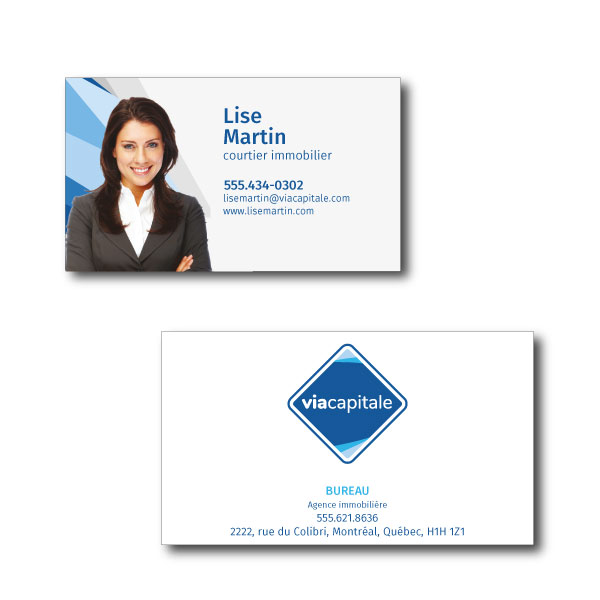 Cartes d'affaires de Via Capitale. Imprimées sur un carton 16pts laminé mat deux cotés. format 3.5 X 2
