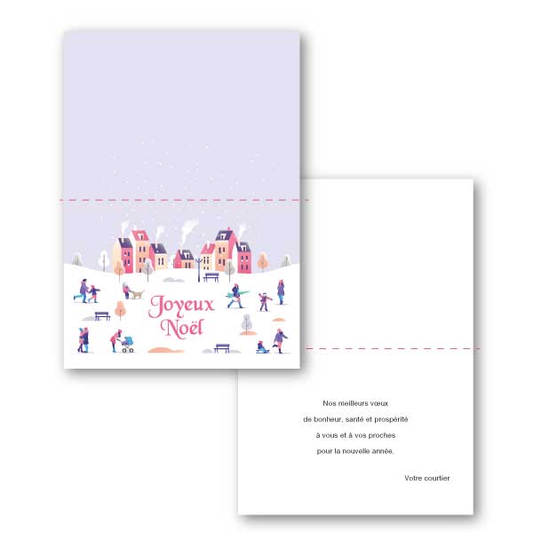 Cartes de Noël imprimées sur un carton 14pts. format 5 X 7. Enveloppe comprises. Se vend en quantités de 50, 100, 250 ou 500.